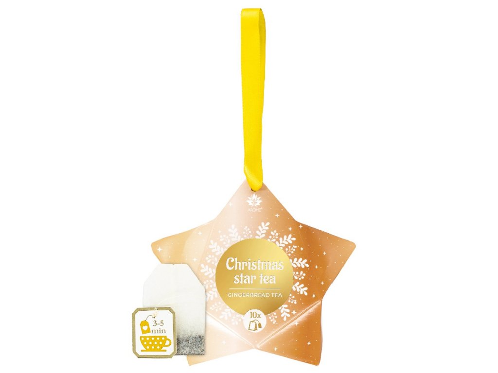10 čajových sáčků je zabaleno v elegantní krabičce ve tvaru hvězdy s vánočním motivem – krásný drobný dárek pro vaše blízké nebo stylová dekorace na stromeček.