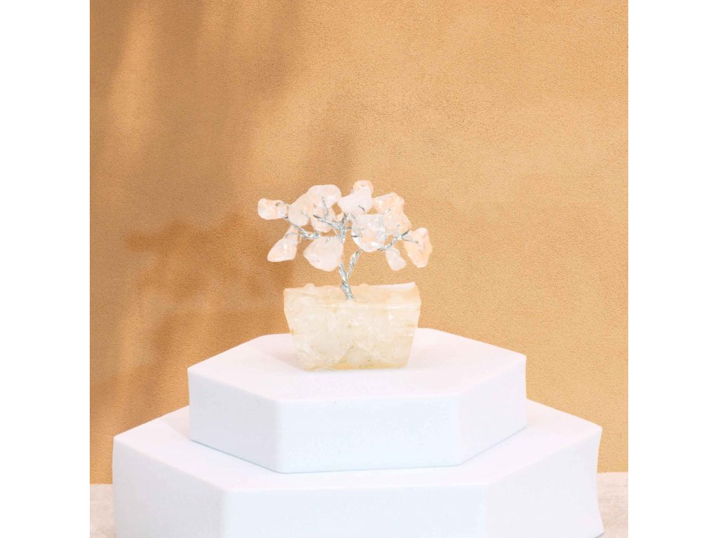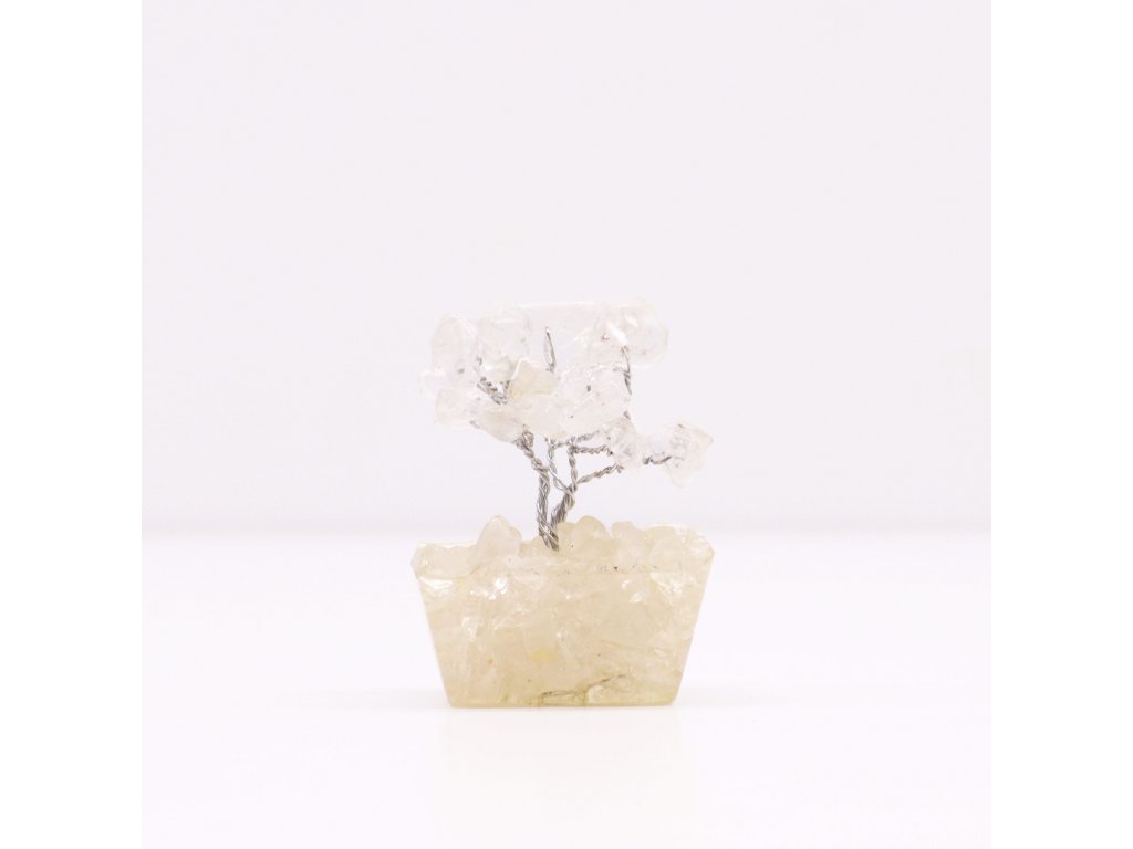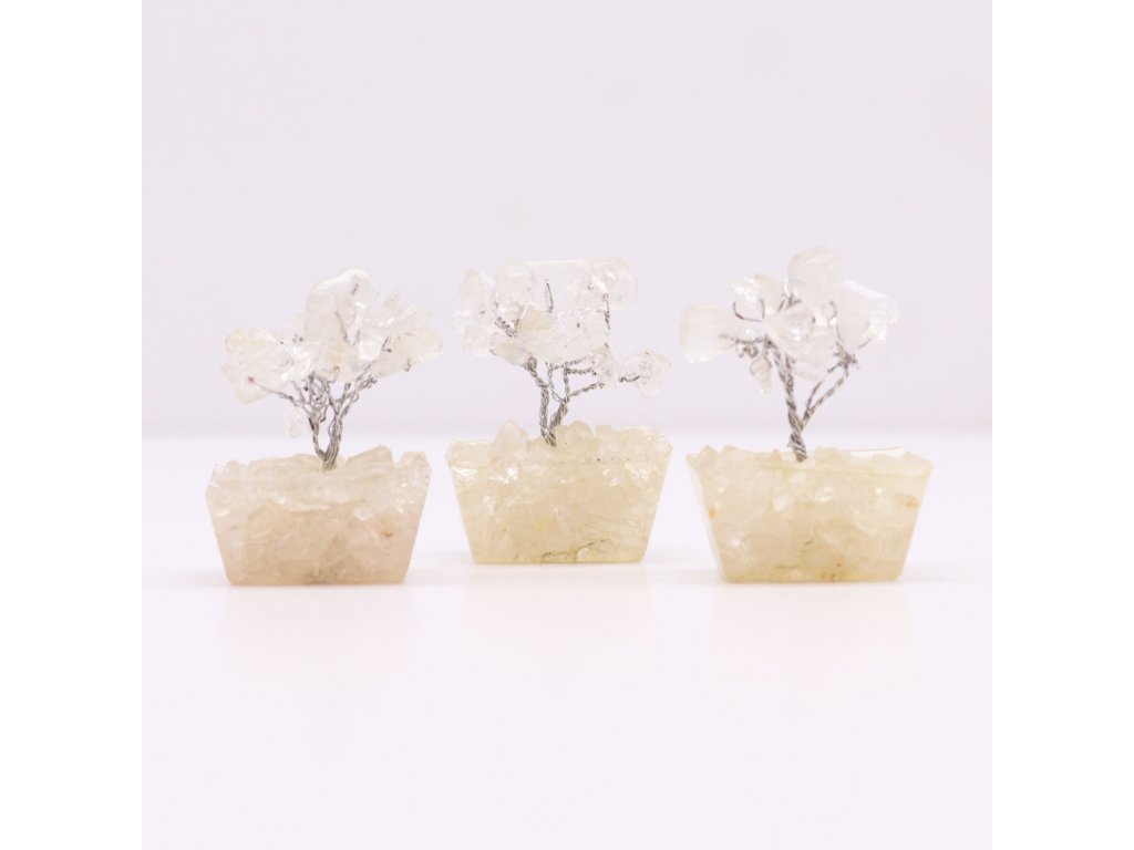 AWM Mini Stromeček z Drahých Kamenů na Orgonitové Základně – Skalní Křemen (15 kamenů) 1ks
