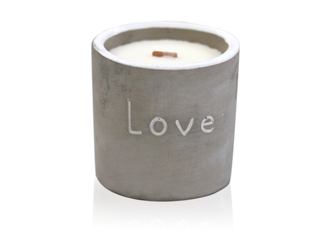 Materiály/Složení beton, sójový vosk, dřevěný knot, vůně