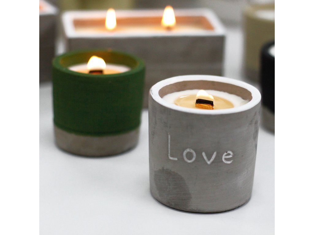Na spodní části svíčky jsou přidány plstěné podložky, aby se předešlo poškrábání povrchů. Přírodní dřevěný knot vytváří příjemný zvuk praskajícího dřeva v krbu. Betonovou část svíčky lze opětovně po vyhoření svíčky použít ať už jako svícen nebo jako květináč.