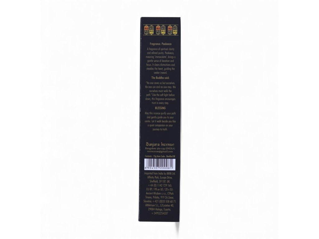 Vůně duchovní čistoty a ušlechtilé jemnosti. Pakeeza, což znamená „neposkvrněná“, přináší tichý pocit oddanosti a zaměření. Odstraňuje rozptýlení a uklidňuje srdce, vedoucí hledajícího do jeho nitra.