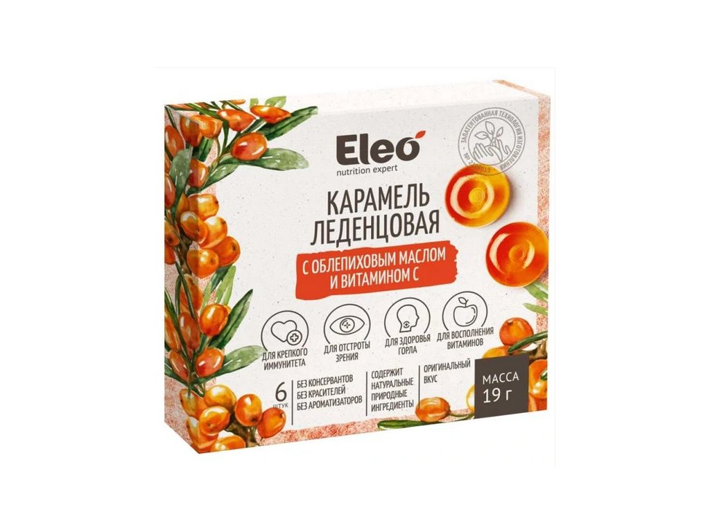 Eleo Karamelové bonbóny s rakytníkovým olejem a vitamínem C 19 g
