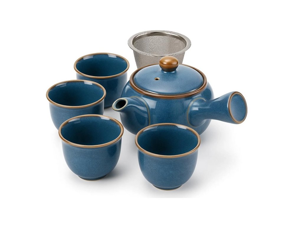 Tato prémiová japonská čajová souprava je vyrobena z kvalitní, pečlivě vypalované keramiky se sametově hladkým povrchem a ušlechtilou modrou glazurou, která zaručuje nadčasový a exkluzivní vzhled na každém stole.