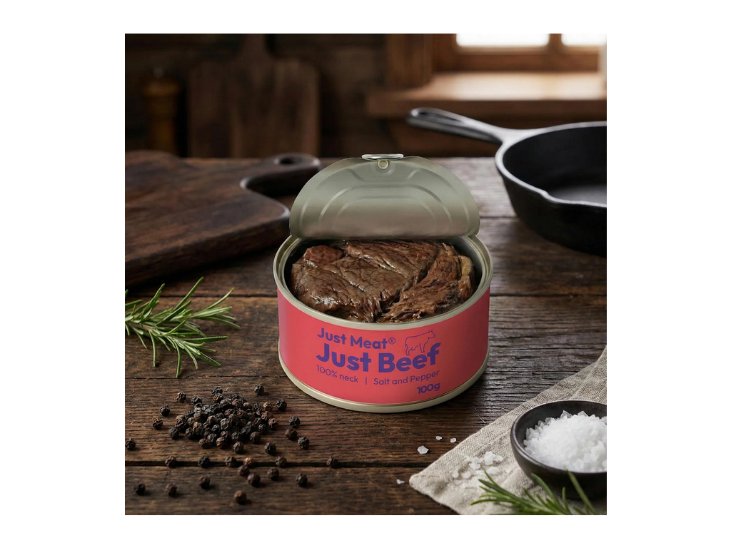 Just Beef nabízí čisté hovězí maso ve vlastní šťávě v praktickém balení připraveném k okamžitému použití. Obsahuje pouze 100% hovězí maso bez konzervačních látek, bez lepku a bez zbytečných přísad. Díky šetrnému zpracování si zachovává plnou chuť, šťavnatost a vysoký obsah plnohodnotných bílkovin.