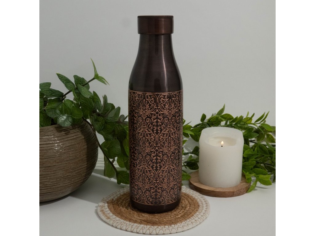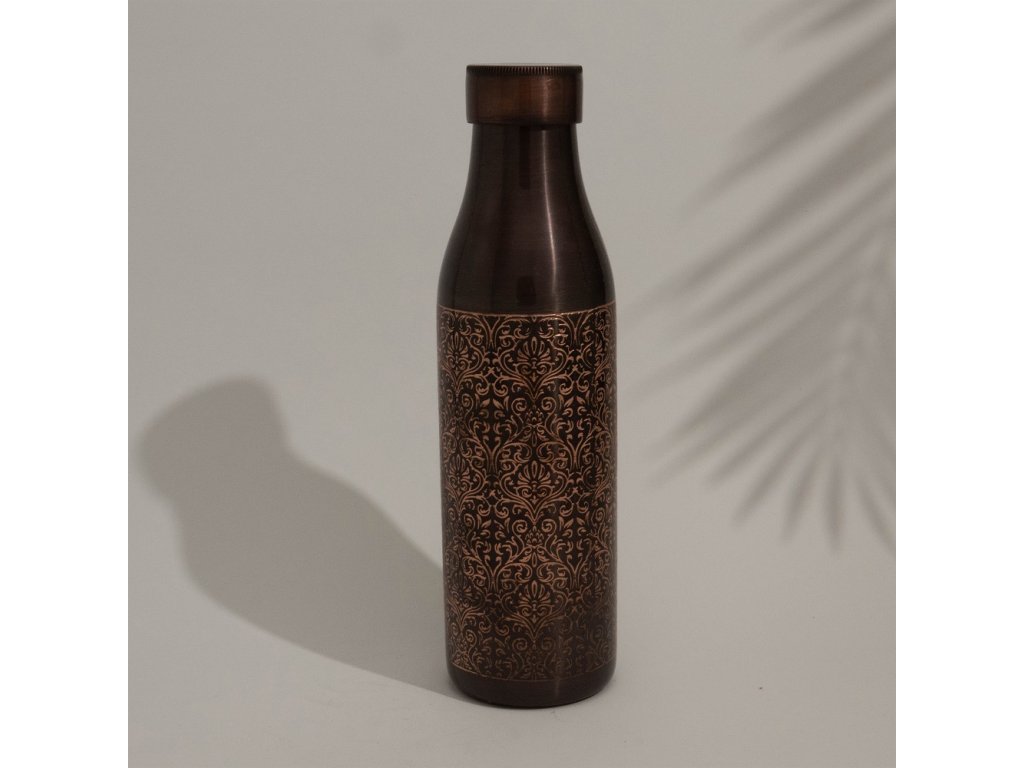 Láhev na vodu z čisté mědi, s mléčným starožitným gravírováním, ± 950 ml