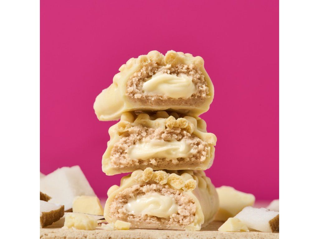 Proteinová tyčinka s 18% krémovou náplní s příchutí kokosu, 5,9% kokosového nápoje v prášku, 5,5% strouhaného kokosu, 7% sójových křupek a poliata 33% bílou čokoládou. Se sladidly. Vysoký obsah bílkovin.