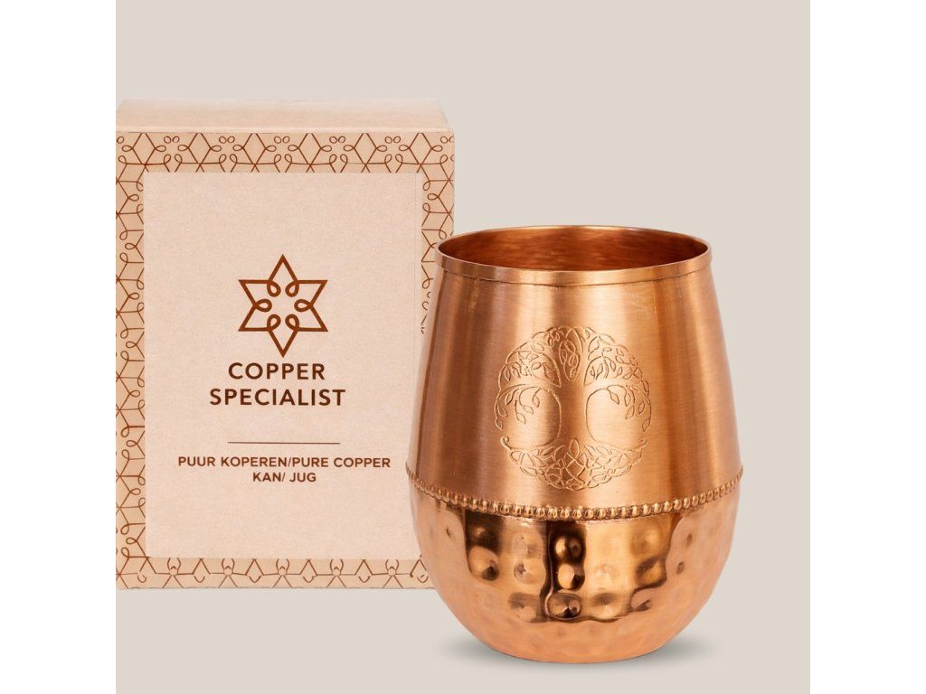 Ájurvéda již od starověku obhajuje výhody pití vody z měděných nádob na pití. Ajurvéda uvádí, že udržování vody v měděné láhvi nebo sklenici po dobu 8-10 hodin má vyrovnávací účinek na tři bioenergie (dóše), které cirkulují v lidském těle (Vata: element vzduchu, Pitta: element ohně a Kapha: element vody). Kromě toho se voda v měděných nádobách na pití stává přirozeně zásaditou, což pomáhá udržovat vyváženou hladinu pH. Přečtěte si více zde.