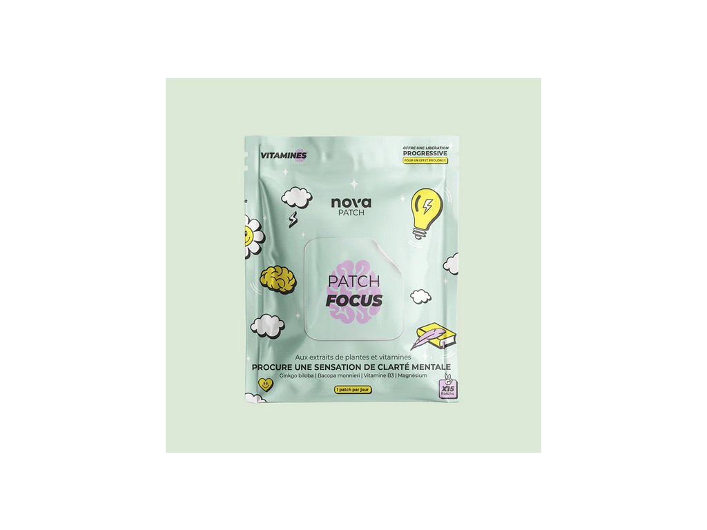 Dermatologicky testovaný a studiemi ověřený, Nova Patch Focus kombinuje aktivní složky známé svými příznivými účinky na paměť, koncentraci a mentální energii a zároveň respektuje vaši přirozenou rovnováhu.